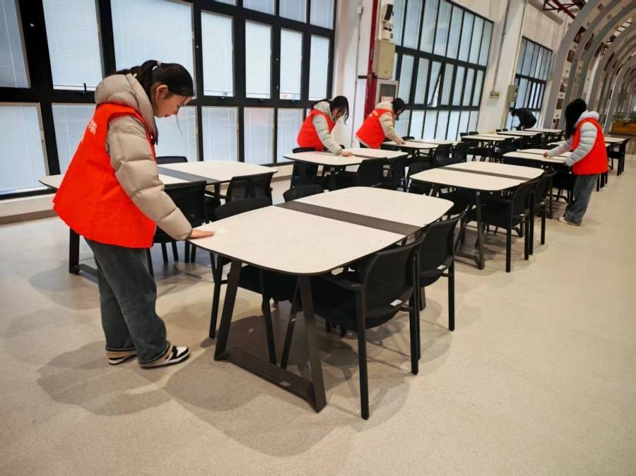 除了社区服务,学院还组织志愿者开展了“擦亮盾构・筑梦建工”现代建筑技术馆清扫活动。志愿者们身着志愿服,携带清洁工具对馆内盾构机教学区域和技术馆教室进行细致清洁,从课桌、操作台到玻璃展柜,每一处都擦拭得一尘不染。活动既锻炼了同学们的动手能力,也为新学期师生开展教学提供了整洁舒适的环境。